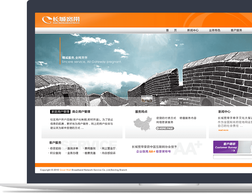 九游平台以用户体验为核心,为长城宽带规划,设计,开发品牌官网,助力长城宽