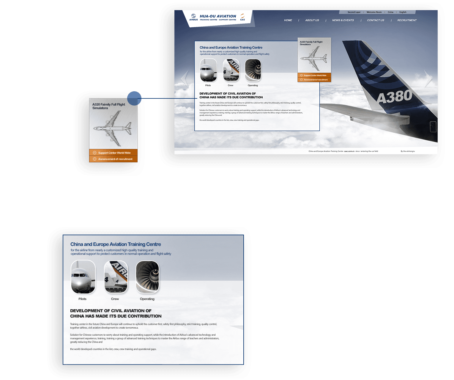 平台以A380代表性图片作为主视觉焦点,有效传达自身产品特征。并根据机长交流学习需求,定制开发平台功能。