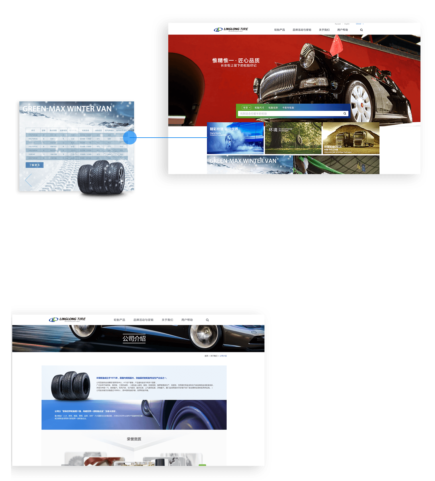 玲珑轮胎官网第一屏设置智能搜索通道,通过多维度分类进行精准查询,便于用户直接找到自己想要的产品。