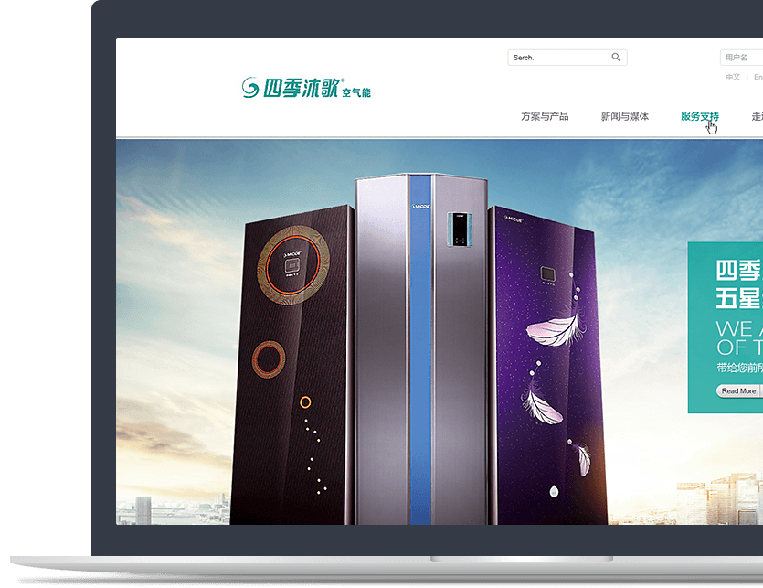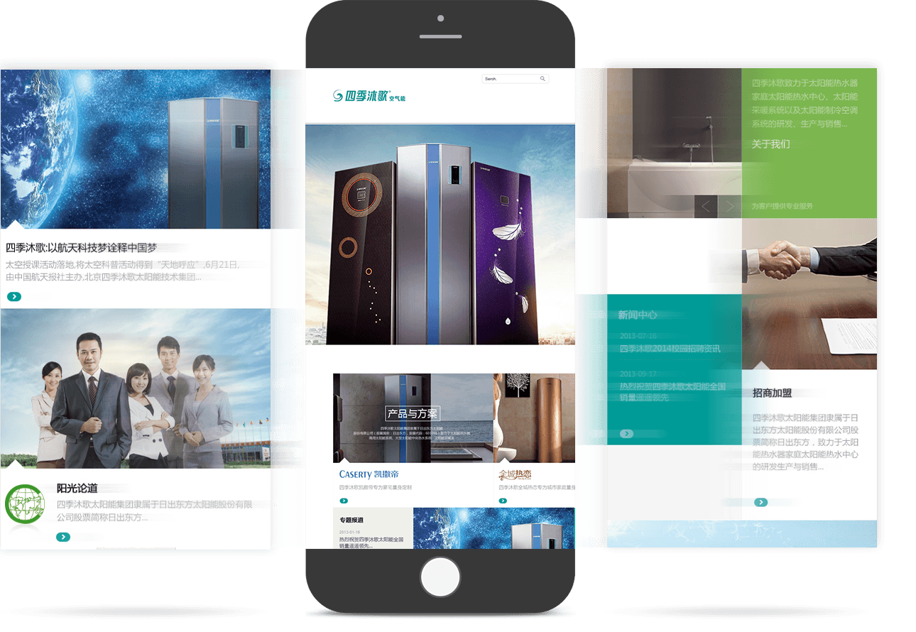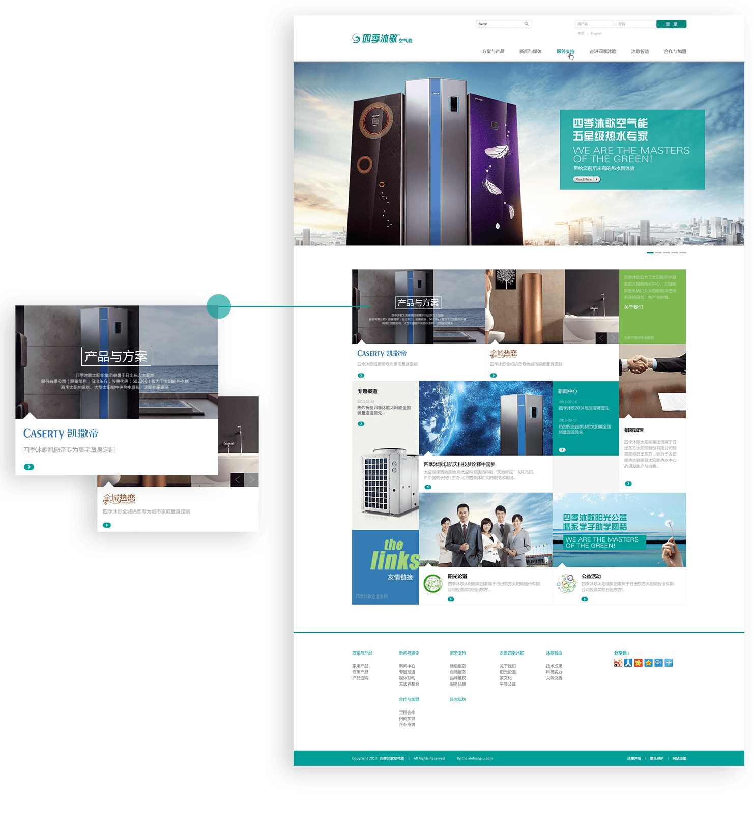 官网着力表现四季沐歌绿色能源产业的蓬勃朝气和社会责任,呈现出科技感、现代感