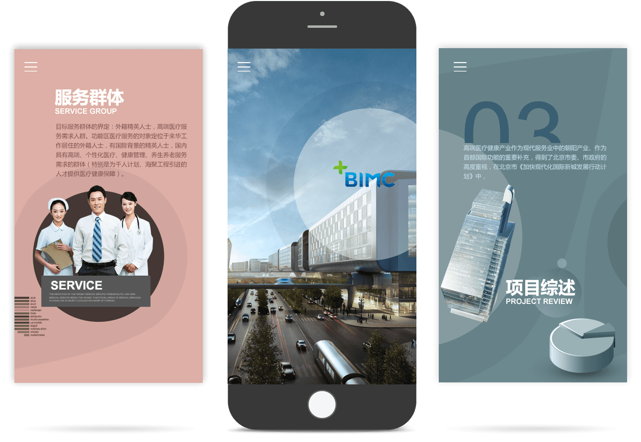 网站利用视频元素和FLASH技术,实现三维立体的动画表现,展示北京国际医疗服务区全貌,形成强烈的视觉感受,塑造北京国际医疗服务区的品牌形象。同时,网站中大量鼠标交互效果,充分调动访问者的兴趣,提升用户的浏览体验。