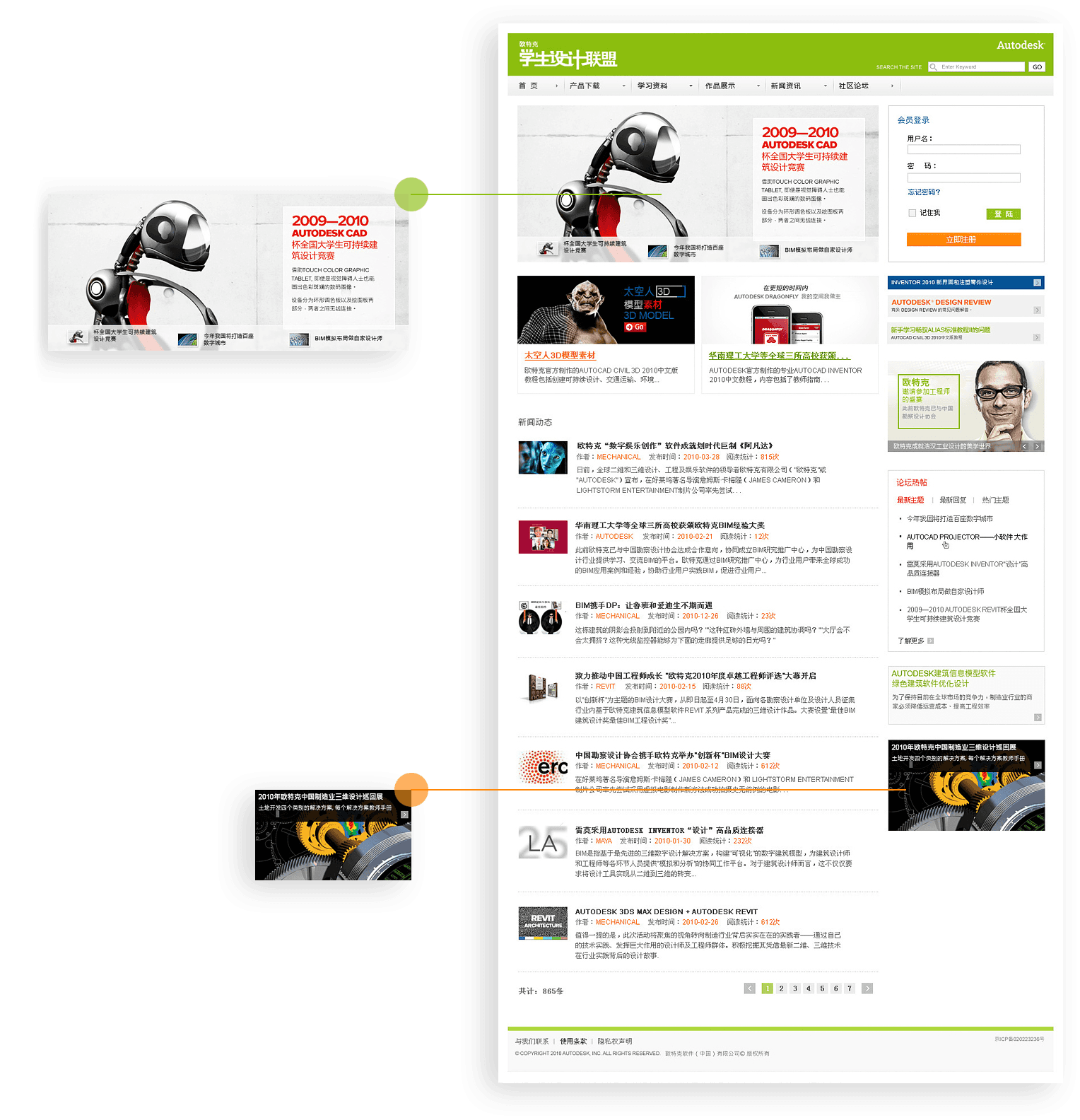 欧特克学生设计联盟网站以平台运营思 路为核心,设置多个主题活动、营销互动功能模 块为后续平台发展奠定基础。同时,九游平台长期为其提 供运维服务支持,保障社区平台稳定运营。