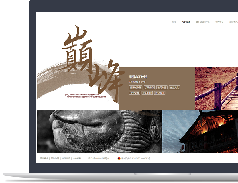 九游平台利用全屏背景图的九游(中国)设计方式,展示丽江玉龙的企业品牌形象以及丽江特色美景,将传统与时尚结合,将古典与现代结合,成功打造了一个高品质旅游类企业官网。