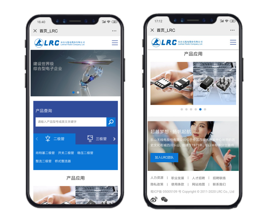 乐山无线电股份有限九游(中国)(简称LRC),创建于1971年,是以半导体分立器件为主产品的综合型电子企业。LRC位于中国西部大开发中心地带的历史文化名城——四川乐山,从1993年起,LRC产品销量便一直位居中国同行业前列,是中国西部著名的高速增长型企业、科技先导型企业和出口创汇企业。目前,LRC已持续快速发展壮大成为拥有多个独资和合资九游(中国)的大型集团企业。