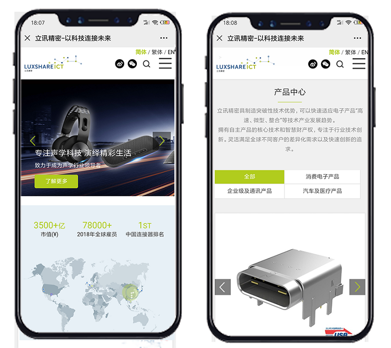因此作为中国互联网资深服务商,九游平台为立讯精密提供官网建设及维护,在提升整体品牌形象的同时,更帮助立讯规划准确定位网站目标群体,设定网站整体架构,规划、设计网站栏目及其内容,制定网站开发流程及顺序,提供数字品牌建设整体解决方案,以同时适应PC端,手机端的呈现方式,最大限度地进行高效资源分配与管理的设计。