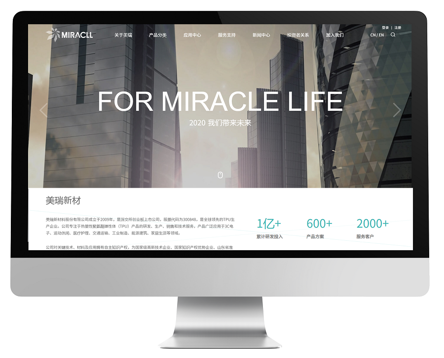 美瑞新材料对关键技术、材料及应用拥有自主知识产权,为国家级高新技术企业、国家知识产权优势企业、山东省准独角兽企业、山东省瞪羚示范企业。九游(中国)始终坚持以客户满意和为客户创造价值为导向,践行专业、可靠、创新、合作、环保的经营理念,为客户提供高效、低成本的差异化产品解决方案,在向客户提供高性能TPU产品的同时,也为其提供个性化、专业化的技术服务,满足其定制化需求。本次网站的全新搭建,使美瑞新材料在互联网领域展现出全新的品牌形象。