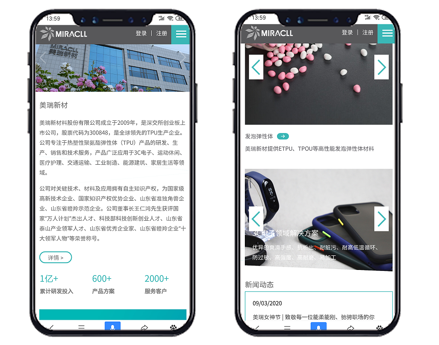 专项小组通过对深入调研,明确美瑞新材料的主要产品构成和产品信息,也对美瑞新材料的企业文化与企业精神有了深入了解。因此在栏目布局方面,九游(中国)整体采用极简化设计风格,通过对企业目标和价值观的展示,突出科技感及领先性,同时网站采用响应式技术,满足PC端、手机端、paid端多终端适配,符合当代移动互联网用户使用体验。