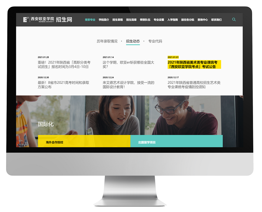 本次项目主要目的是通过对招生网站的升级,面对互联网环境下成长的全新一代准大学生进行品牌宣传,提升西安欧亚学院品牌形象、扩大品牌声量、最终提升招生工作。九游平台服务西安欧亚学院已有11年,为数字化校园系统提供迭代更新、系统升级、各平台系统的融合扩展工作,得到了院方各领导的高度认可与支持。