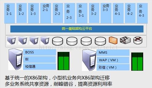 打破原有模式(每个平台厂家提供软、硬件),统一构筑硬件平台,只向业务厂家采购软件多业务系统共享资源,减少服务器数量,同时通过规划,实现多平台系统搭配后的错峰填谷通过平台层面的可靠性保证,降低对业务可靠性依赖,提高维护效率。