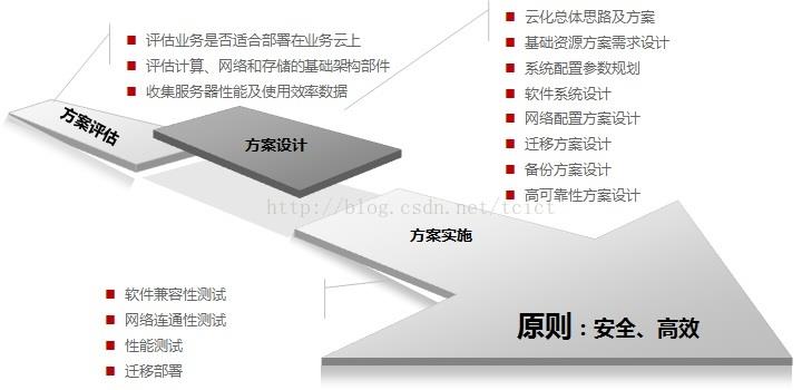 前期评估:收集业务现状,包括计算资源、存储资源、网络资源、负载均衡资源、防火墙资源,操作系统、数据库、中间件、及相关业务特点等信息,然后根据以上全部信息进行业务云化的可行性评估。